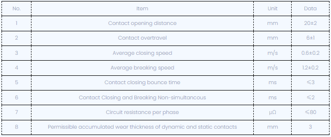 Μετά τη ρύθμιση του διακόπτη κυκλώματος, οι μηχανικές χαρακτηριστικές παράμετροι εμφανίζονται παρακάτω: