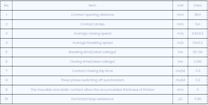 Μετά τη ρύθμιση του διακόπτη κυκλώματος, οι μηχανικές χαρακτηριστικές παράμετροι εμφανίζονται παρακάτω