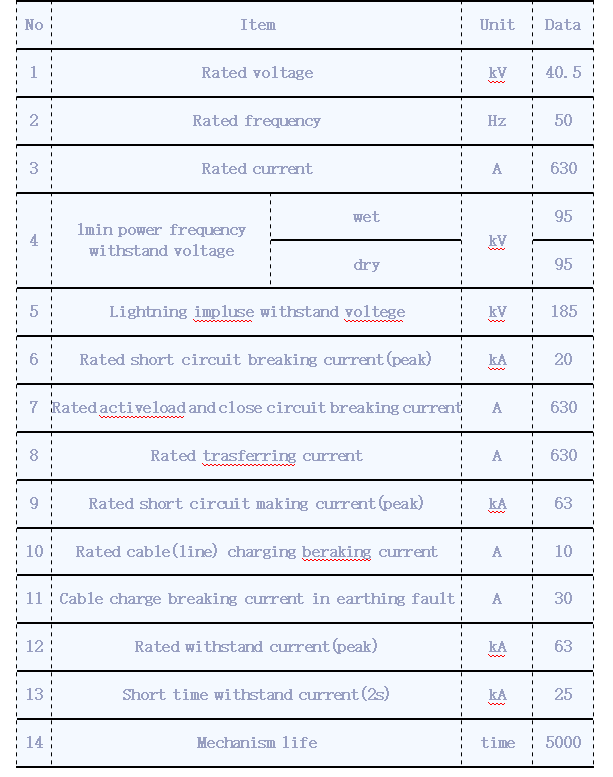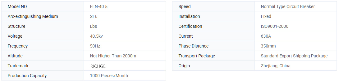 FLN-40.5KV Διακόπτης διάλειμμα φόρτωσης Χρησιμοποιήστε το αέριο SF6 ως ARC σβήνοντας και μονωτικό μέσο. Υπάρχουν τρεις σταθμοί εργασίας: άνοιγμα, κλείσιμο και γείωση στο διακόπτη. Έχει μικρό όγκο, εγκαθιστώντας εύκολη στη χρήση, ισχυρή περιβαλλοντική adaptabiliy και άλλα χαρακτηριστικά.