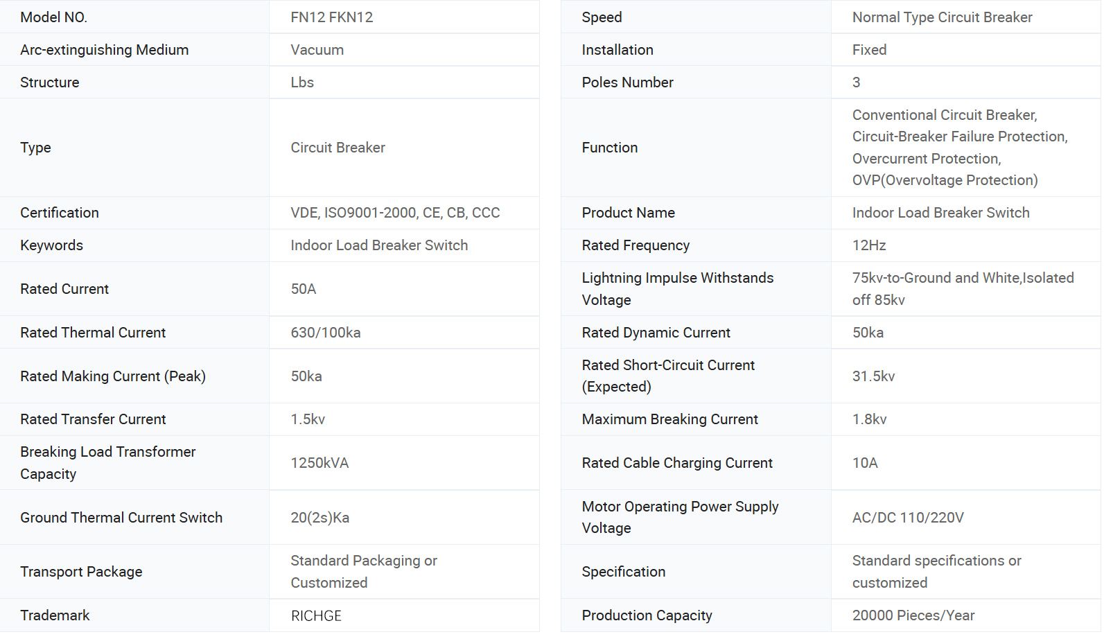 Ο διακόπτης φορτίου υψηλής τάσης FKN12-12D/630-20 AC είναι τριφασική διακόπτη υψηλής τάσης με ονομαστική τάση 12KV και ονομαστική συχνότητα 50Hz. Χρησιμοποιείται για την εναλλαγή του ρεύματος φορτίου, του ρεύματος κλειστού βρόχου, του ρεύματος μετασχηματιστή χωρίς φορτίο και του ρεύματος φόρτισης καλωδίων, από το συνδυασμένο ρεύμα βραχυκυκλώματος. Ο διακόπτης φόρτωσης που είναι εξοπλισμένος με τον διακόπτη γείωσης μπορεί να αντέξει το ρεύμα βραχυκυκλώματος.