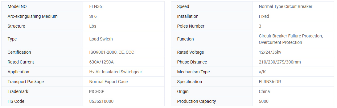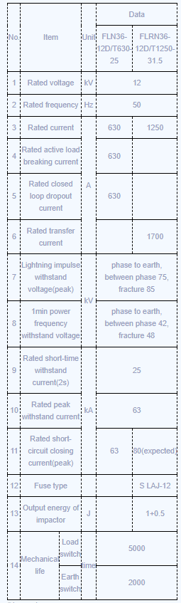 Ο διακόπτης φόρτωσης FLN36-12D/T630-20 χρησιμοποιεί το αέριο SF6 ως μέσο μόνωσης και τόξου. έχει τρεις θέσεις: κλείσιμο, άνοιγμα και γείωση. Οι δυναμικές και στατικές επαφές έχουν απομόνωση διπλής διακοπής, υψηλότερη αξιοπιστία. εκτεταμένη ηλεκτρική ζωή (επίπεδο E3, ονομασμένο ρεύμα 100 φορές). εκτεταμένη μηχανική ζωή (επίπεδο M2, 5000 φορές). ονομασμένο ρεύμα θερμικής σταθερότητας (4S) 20ka. Οι θέσεις κλεισίματος και ανοίγματος είναι ηλεκτρική ή χειροκίνητη λειτουργία και η θέση γείωσης είναι χειροκίνητη λειτουργία. Η τροφοδοσία ηλεκτρικής ενέργειας είναι διαθέσιμη σε AC220V, AC110V, DC220V. DC110V, DC48V, DC24V; έχει ηλεκτρική και χειροκίνητη λειτουργία αλληλοσύνδεσης, και λειτουργία ρεύματος τροφοδοσία polarity αντίστροφη προστασία σύνδεσης συνάρτηση?