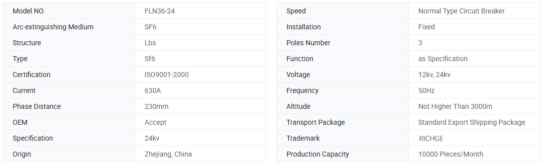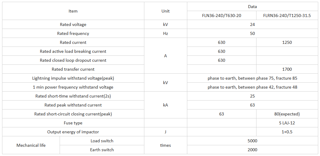 FLN36-24D Διακόπτης διάλειμμα φόρτωσης Χρησιμοποιήστε το αέριο SF6 ως τόξο σβήνοντας και μονωτικό μέσο. Υπάρχουν τρεις σταθμοί εργασίας: άνοιγμα, κλείσιμο και γείωση στο διακόπτη. Έχει μικρό όγκο, εγκαθιστώντας εύκολη στη χρήση, ισχυρή περιβαλλοντική adaptabiliy και άλλα χαρακτηριστικά.
