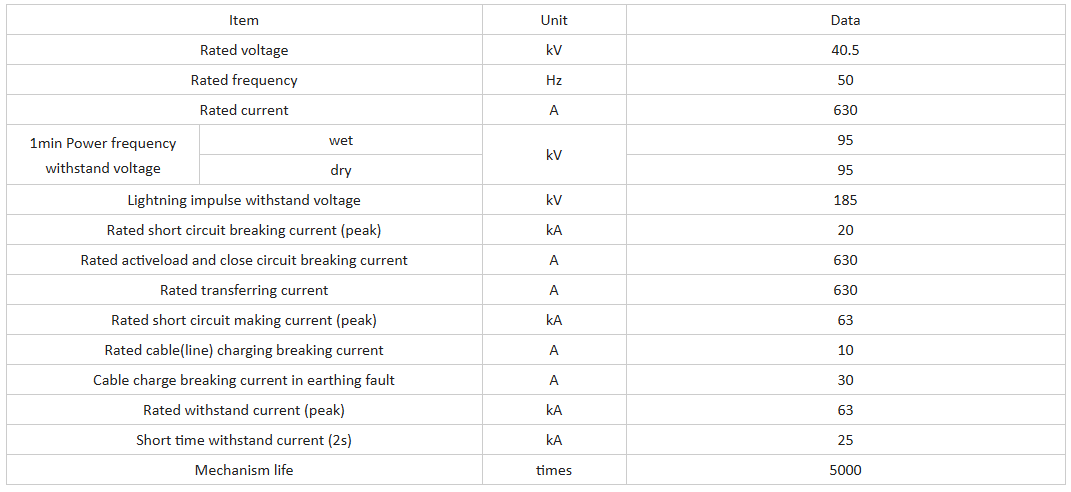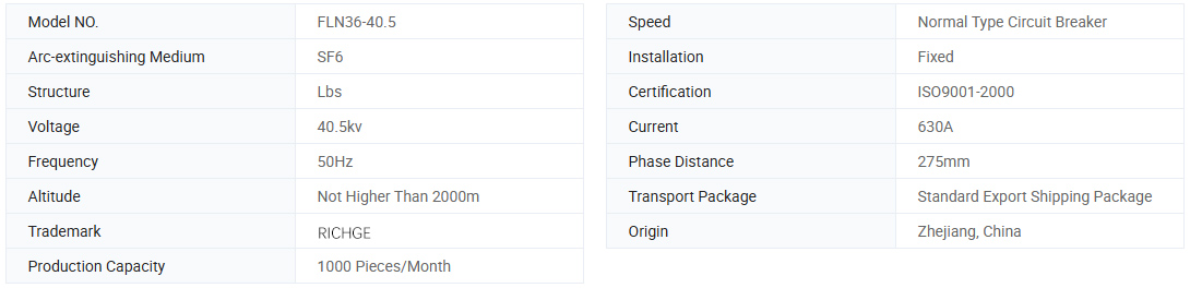 Διακόπτης φορτίου FLN36-40.5D/T630 Εξάκαφλρουο (SF6) Διακόπτης φορτίου και ο συνδυασμός ασφαλειών FLN36-40.5DR/125 είναι κατάλληλος για τους σταθμούς ηλεκτρικής ενέργειας και τον βιομηχανικό ηλεκτρικό εξοπλισμό με τριφασικό δίκτυο δακτυλίων AC 50/60Hz ή τερματικό τροφοδοτικό. Χρησιμοποιούνται ως προστασία γραμμής ελέγχου φορτίου για συστήματα ισχύος. Ο διακόπτης φόρτωσης χωρίζει και κλείνει το ρεύμα φορτίου, το ρεύμα κλειστού βρόχου, το ρεύμα μετασχηματιστή χωρίς φορτίο και το ρεύμα φόρτισης καλωδίων. Οι συνδυασμένες ηλεκτρικές συσκευές μπορούν να σπάσουν οποιοδήποτε ρεύμα υπό ονομαστικό ρεύμα βραχυκυκλώματος και είναι κατάλληλα για ηλεκτρικά πλήρη σύνολα εξοπλισμού, όπως οι κύριες μονάδες δακτυλίου και οι υποσταθμοί τύπου κουτιού.