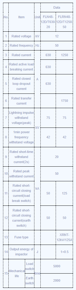 Τεχνικές παράμετροι του FLN48-12D τύπου εσωτερικού χώρου HV SF6 Load Break
