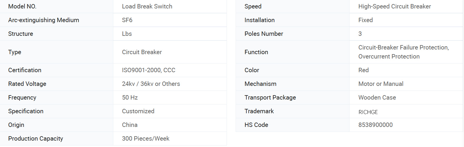 Και οι δείκτες απόδοσης του πληρούν το εθνικό πρότυπο GB/T3804-2017 "3.6KV-40.5KV High-Voltage AC Load Switch", το οποίο είναι το κύριο στοιχείο μεταγωγής της κύριας μονάδας δακτυλίου.