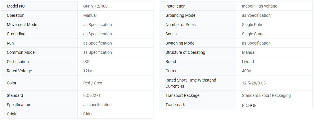 GN19-12 (C) Ο διακόπτης αποσύνδεσης εσωτερικού χώρου HV ισχύει για το σύστημα ισχύος της ονομαστικής τάσης 12KV, AC 50/60Hz. Είναι εξοπλισμένο με μηχανισμό χειροκίνητης λειτουργίας CS6-1 και χρησιμοποιείται για να σπάσει και να κάνει το κύκλωμα κάτω από το φορτίο χωρίς φορτίο. Υπάρχει πρόσθετος τύπος ρύπανσης, τύπος υψηλού υψομέτρου και τύπος ενδεικτικής ισχύος. Γίνεται σύμφωνα με το IEC 62271-102.