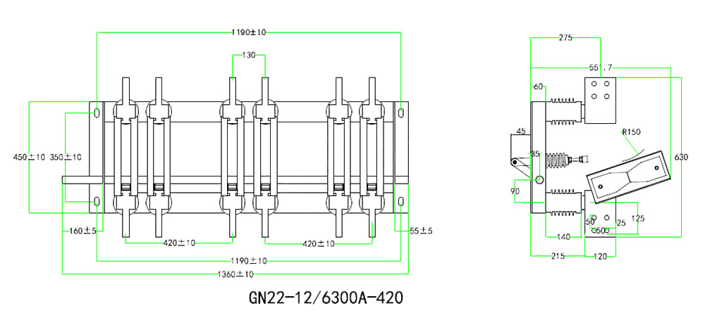 Αυτή η σειρά διακόπτη λειτουργεί με χειροκίνητο μηχανισμό λειτουργίας CS6-2 ή ηλεκτρικό μηχανισμό λειτουργίας και μπορεί να εγκατασταθεί στην αριστερή ή τη δεξιά πλευρά του αποσυνδεδετή.