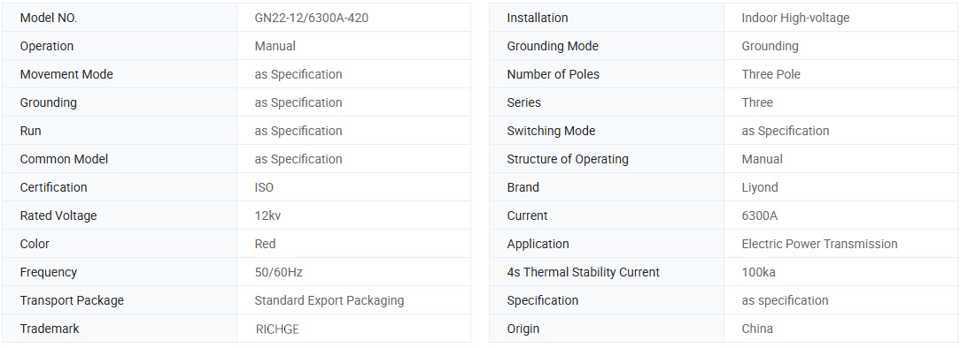 Το GN22-12 (C) (D) σειρές εσωτερικού χώρου High-Voltage Disconnector High-Voltage Switchgear χρησιμοποιείται σε συστήματα ισχύος με ονομαστική τάση 12kV, 50Hz και κάτω, για σύνδεση, αποσύνδεση ή μετατροπή γραμμών κάτω από τάση αλλά χωρίς φορτίο.