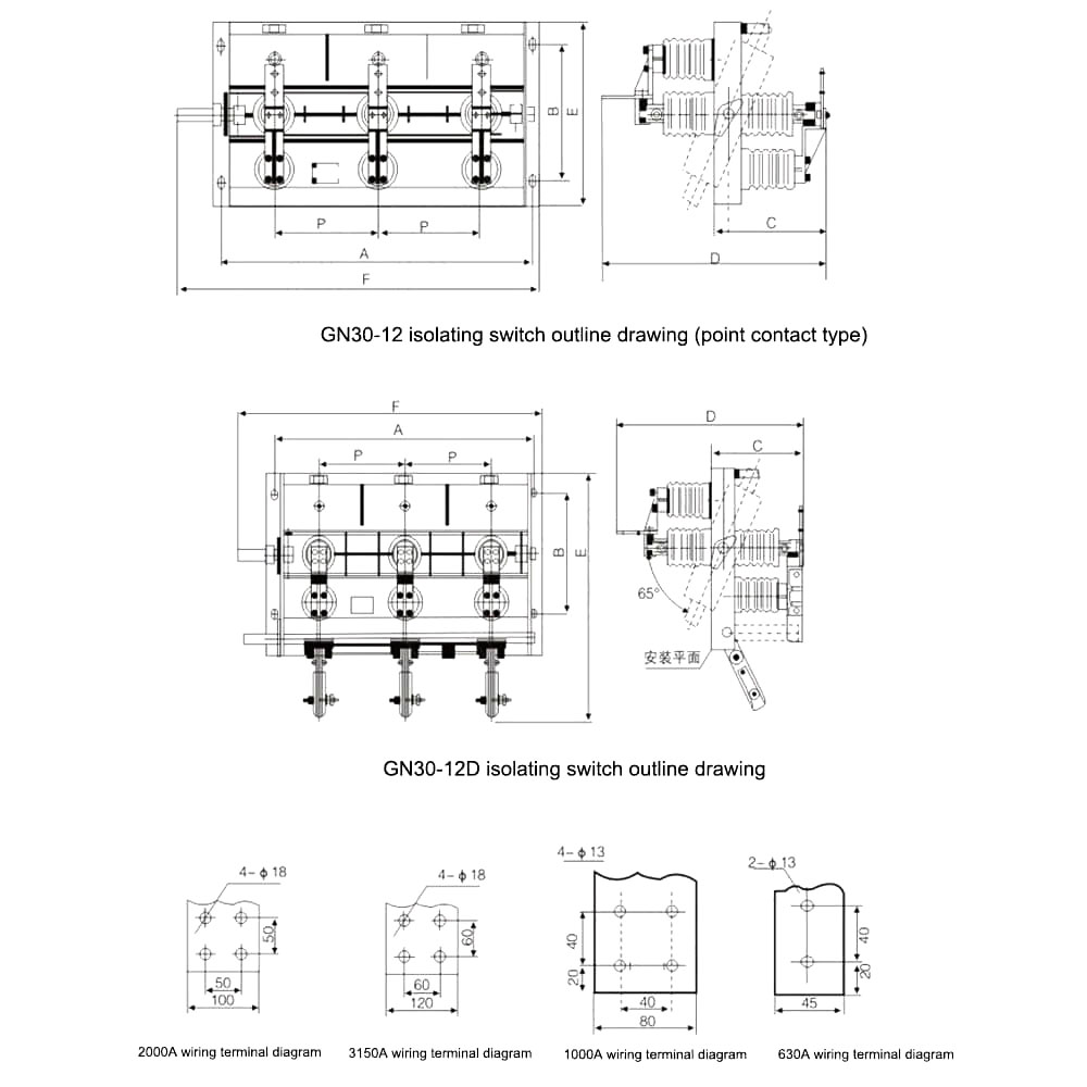 GN30-12 Τύπος περιστροφικός διακόπτης απομόνωσης υψηλής τάσης GN30 είναι ένας νέος τύπος διακόπτη απομόνωσης με περιστροφικό μαχαίρι επαφής. Η κύρια δομή είναι ότι τα ανώτερα και κατώτερα επίπεδα του τριφασικού κοινού πλαισίου σταθεροποιούνται με δύο ομάδες μονωτήρων και επαφών και ο διακόπτης ανοίγει και κλείνει περιστρέφοντας το μαχαίρι επαφής.