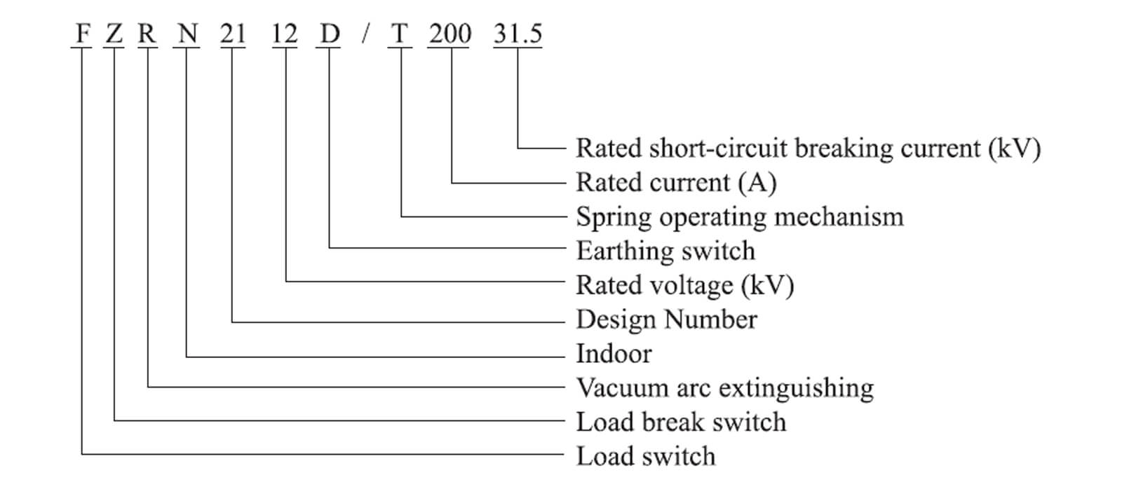 Ο διακόπτης φορτίου κενού FZN21-12 σειρές αποτελείται κυρίως από διακόπτη αποσύνδεσης (ασφαλείας που περιορίζει το ρεύμα του συνδυαστή, βρίσκεται στον διακόπτη αποσύνδεσης), σωλήνα μεταγωγής κενού, διακόπτη γείωσης, μηχανισμός λειτουργίας ελατηρίου και ούτω καθεξής.