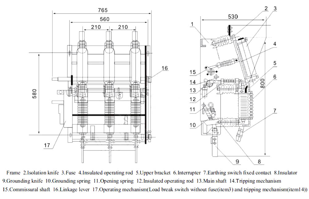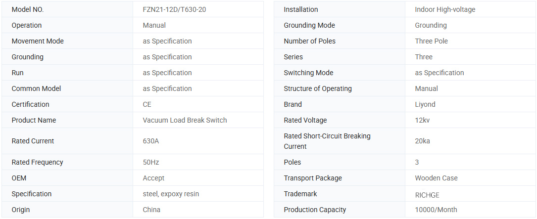 FZN21-12/T630-20 και FZN21-12 (R) D/T125-31.5 Εσωτερική AC AC Υψηλή τάσης φορτίου φορτίου-Μονάδες συνδυασμού ασφαλειών, Χρησιμοποιείται για τον κλάδο και τον κλάδο του κιβωτίου ταχυτήτων και του μηχανισμού μετασχηματισμό, τον μηχανισμό μετασχηματισμό και τον μηχανισμό μετασχηματισμό, τον μηχανισμό μετασχηματισμό, τον μηχανισμό μετασχηματισμό, τον μηχανισμό μετασχηματισμό, τον μηχανισμό μετασχηματισμό, τον μηχανισμό μετασχηματισμό και τον μηχανισμό μετασχηματισμό, Οι επιχειρήσεις εξόρυξης, τα πολυώροφα κτίρια και οι δημόσιες εγκαταστάσεις, μπορούν να χρησιμοποιηθούν ως μονάδα τροφοδοσίας δακτυλίου ή τερματικός εξοπλισμός, διανομή ενέργειας, έλεγχος και προστασία. Τεχνική απόδοση των προϊόντων πληρούν τη δημοσίευση IEC 60265-1/FDIS << Διακόπτες υψηλής τάσης, Μέρος 1: ονομασμένες τάσεις κάτω από 1kV πάνω από 52kV διακόπτη φορτίου υψηλής τάσης >>, IEC60420 << Διακόπτης φορτίου AC υψηλής τάσης - Μονάδες συνδυασμού ασφαλειών >>; και CB1 926 << Διακόπτης φόρτωσης υψηλής τάσης AC-Μονάδες συνδυασμού ασφαλειών >>, GB3804 << 3-63KV AC Διακόπτες υψηλής τάσης >> reguirement.