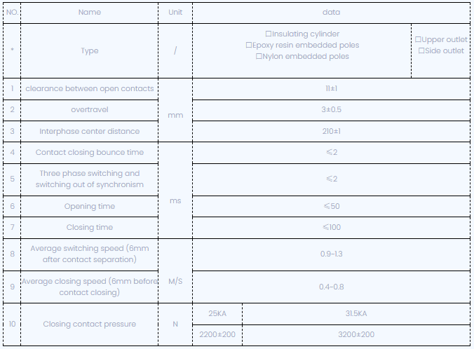 Ο διακόπτης κυκλώματος κενού τύπου VBI συμμορφώνεται με το εθνικό πρότυπο GB1984-2003 HV Circuit Breaker, JB3855-1996 <3,6-40,5kv εσωτερικού AC High Vacuum Breaker>, DL/T403-2000 <12KV-40.5KV HV Circuit Breaker Τεχνικές συνθήκες> Σχετικοί κανονισμοί διακόπτη κυκλώματος τάσης AC