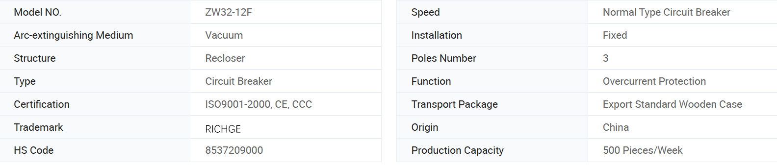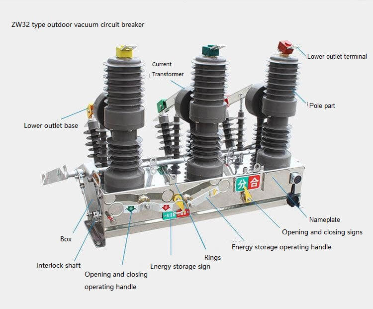 ZW32-12 Υπαίθριος διακόπτης κυκλώματος κενού (εφεξής που αναφέρεται ως διακόπτης κυκλώματος) είναι ένας εξοπλισμός διανομής υπαίθριου ισχύος με ονομαστική τάση 12KV και τριφασικών AC 50Hz. Χρησιμοποιείται κυρίως για να σπάσει και να κλείσει το ρεύμα φορτίου, το ρεύμα υπερφόρτωσης και το ρεύμα βραχυκυκλώματος στο σύστημα τροφοδοσίας. Είναι κατάλληλο για προστασία και έλεγχο σε συστήματα υποσταθμών υποσταθμού και βιομηχανικής και εξόρυξης και μέρη όπου τα αγροτικά δίκτυα ηλεκτρικής ενέργειας λειτουργούν συχνά.
