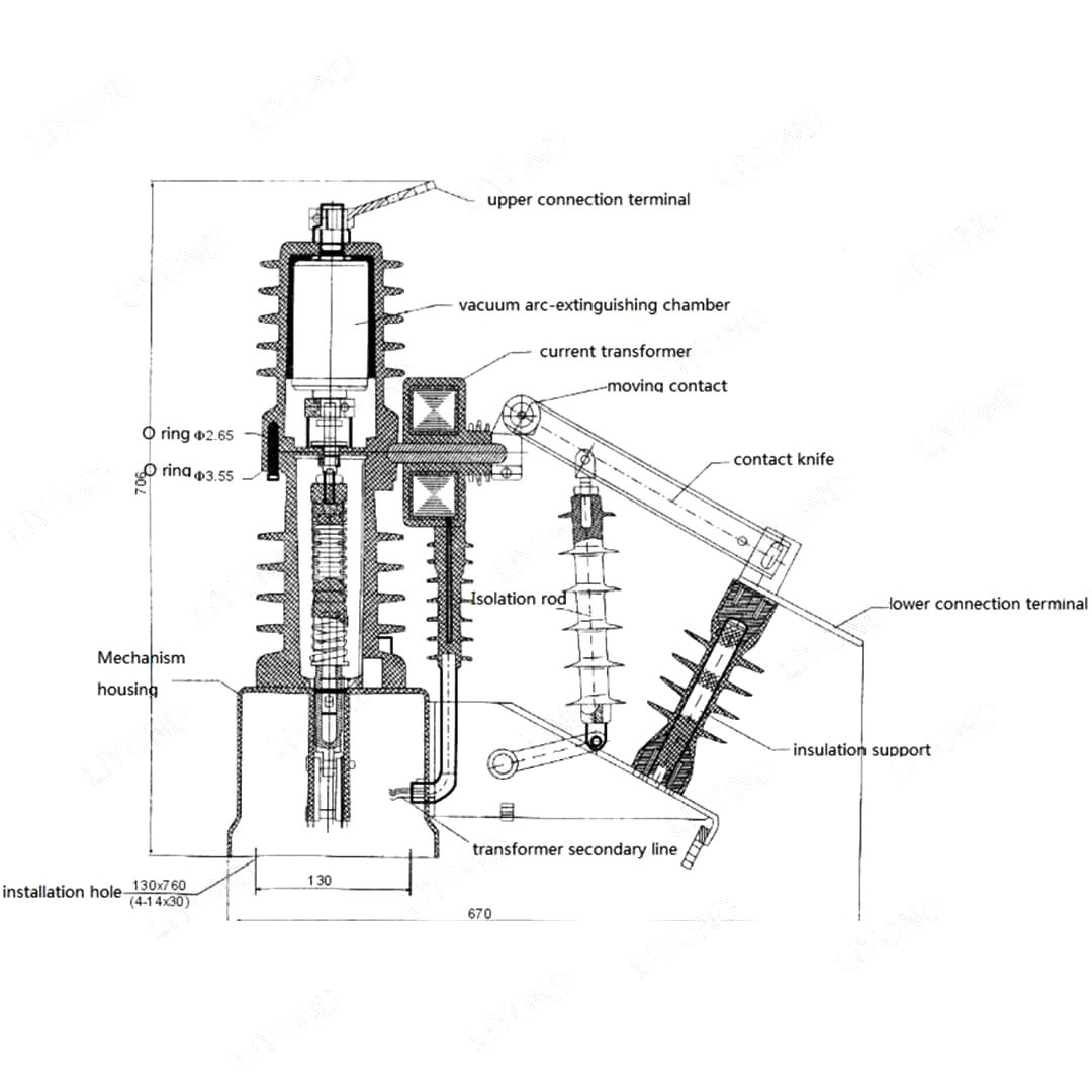 6. Ο διακόπτης κυκλώματος μπορεί να είναι εξοπλισμένος με μετασχηματιστές ρεύματος δύο φάσεων ή τριφασικών ρεύματος για προστασία υπερβολικού ή βραχυκυκλώματος και μπορεί επίσης να παρέχει σημειακά σήματα απόκτησης στον έξυπνο ελεγκτή. Οι τρέχοντες μετασχηματιστές για τη μέτρηση μπορούν να προστεθούν σύμφωνα με τις απαιτήσεις των χρηστών.